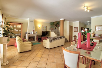 Au rez-de-chaussée il y a un hall 14.84 m2, WC de service, cuisine de 14.12 m2, buanderie avec 17.27 m2, salon avec 13.88 m2, salle à manger 16.82 m2 et salon avec 26,31 m2 avec cheminée (surface totale 57,01 m2). Dans la R / C il y a aussi une suite avec une superficie de 10,37 m2
