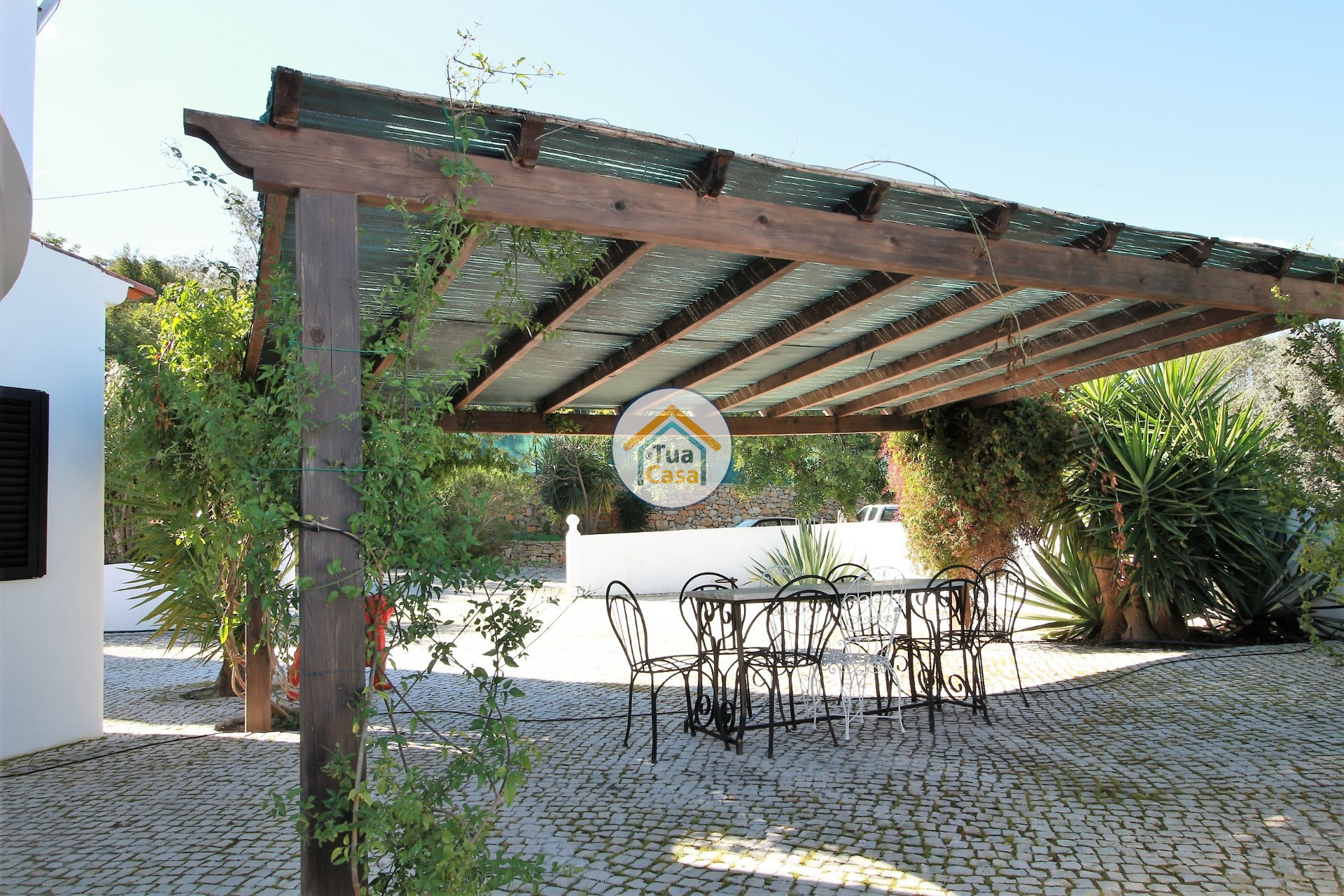 Terrain clôturé et muré, avec portail électrique avec caméra. Jardin avec arbres fruitiers, il a l'irrigation automatique. Il y a de l'eau de forage ou eau de ville.