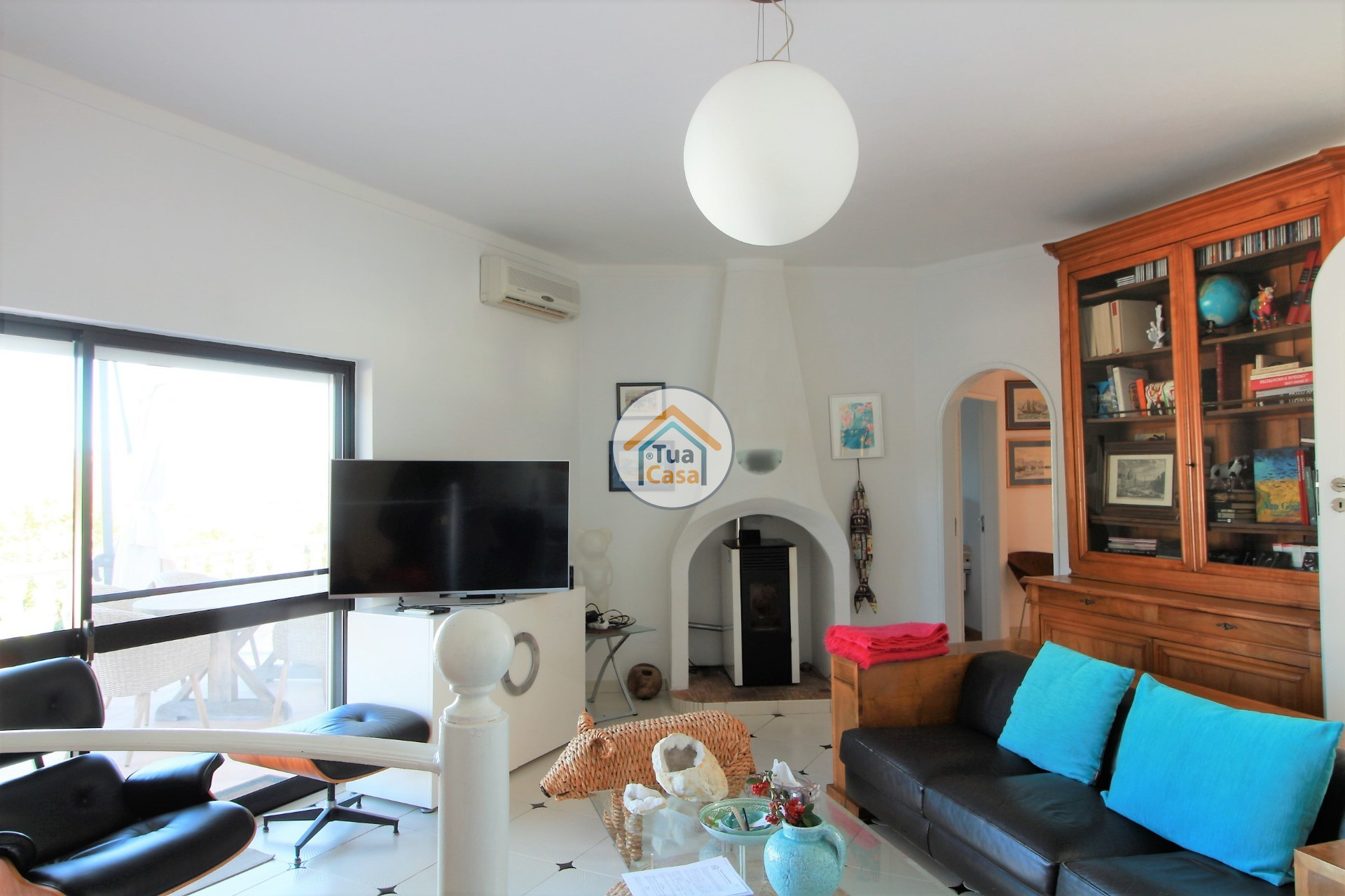 La villa dispose de chauffe-eau solaire et de la climatisation. Dans le salon il y a une poèle à pellets et dans les autres compartiments sont placés des panneaux électriques radiants.