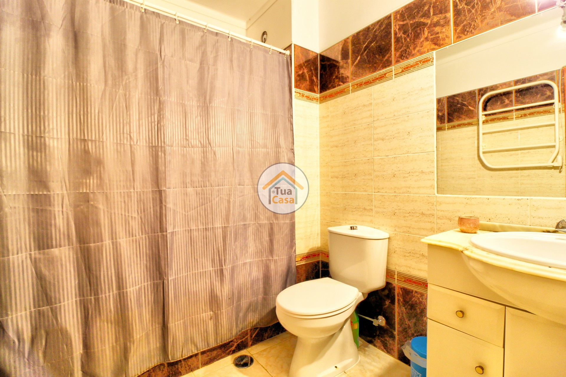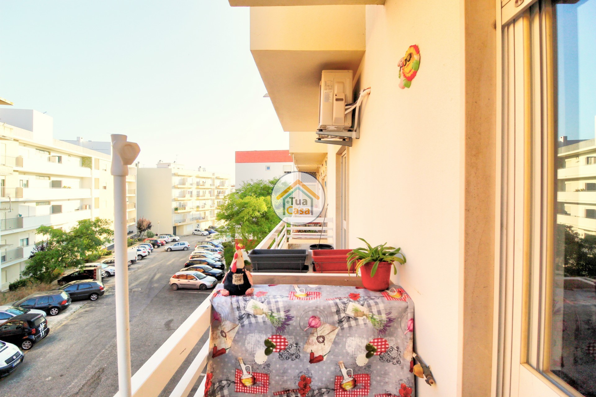 La propriété se compose de: hall d'entrée; cuisine (équipée de plaques chauffantes, four, chauffe-eau et meubles avec beaucoup de rangement), a un balcon, la moitié dans la véranda comme buanderie et rangement; zone de distribution des divisions; salle à manger et salon (a un balcon); garde-manger; deux chambres (une avec balcon privé et armoire intégrée) et salle de bain avec baignoire.